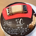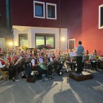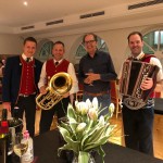 und in bester Gesundheit nahm Bruno unser Standl entgegen und dirigierte uns natürlich auch. Beim anschließenden Abendessen mit der Familie, Freunden und der Musikkapelle gab es als Nachtisch eine “Schachertorte” (Brunos zweites leidenschaftliches Hobby) von Tochter Marina und die legendären millimetergleichen wunderbar mundenden Kekse seiner Annemarie