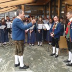Nach dem landesüblichen Empfang vor dem Rathaus marschierten wir mit den Abordnungen zur Kirche. Anschliessend an den Festgottesdienst wurde Pfarrer Albert vor der Kirche in einem Festakt geehrt und anschließend im Kurpark gebührend gefeiert. Wir schlossen uns mit einem Konzert vor schöner Kulisse und einem kleinen Geschenk der Gratulantenschar an. Danke lieber Herr Pfarrer für das stets wertschätzende, ja freundschaftliche Verhältnis und ad multos annos! Vergeltsgott für alles!