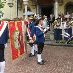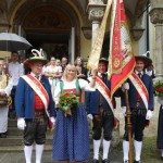 Am Fronleichnamstag wurde wegen des unsicheren Wetters zwar die Prozession abgesagt, die Musikkapelle ließ es sich aber nicht nehmen, die frisch renovierte fast hundertjährige kostbare, wunderschöne Fahne von Hw. Pfarrer Cons. Albert Moser segnen zu lassen. Die durchaus sehr beträchtlichen Kosten der Renovierung haben dankenswerter- und großzügigerweise die Wirtsleute des Hotel Wilder Mann, Monique und Werner Villgrater übernommen. 🙏