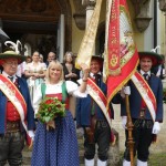 Monique gab dann bei der Segnung auch eine prächtige und stolze Fahnenpatin ab und unser Fähnrich und Vizeobmann Albrecht Halder hielt die Laudatio. Dass Monique sehr musikalisch ist, stellte sie wieder einmal durch das professionelle Dirigat eines Marsches unter Beweis. Unsere Tanzlmusig ließ es sich nicht nehmen zur Feier des Tages beim Wilden Mann anschließend zum Tanz aufzuspielen. Hier ein paar bildliche Eindrücke mit Dank an Bruno Kröll.
