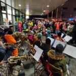 und mehrere kleine Gruppen plus Jugendkapelle beim Christkindlmarkt in Steinach