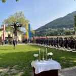 Allen voran unser Herr Pfarrer Albert Moser, Bürgermeister DI Florian Riedl, Ehrenmitglied Franz Muigg, Kommandant der Feuerwehr Steinach am Brenner Florian Raffl und Hauptmann Josl Schwaninger von der Schützenkompanie Steinach.