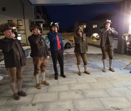 Am 31.1. feierte unser Ehrenmitglied Franz Muigg in voller Rüstigkeit seinen 90er. Die Musikkapelle und die Jagdhornbläser gaben aus diesem Anlass ein Ständchen