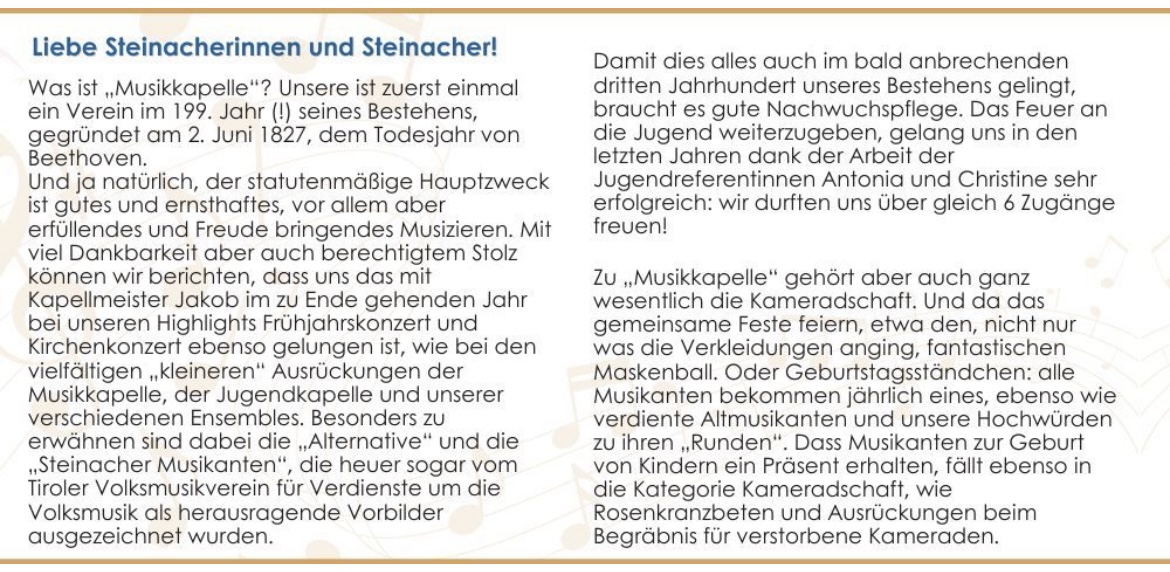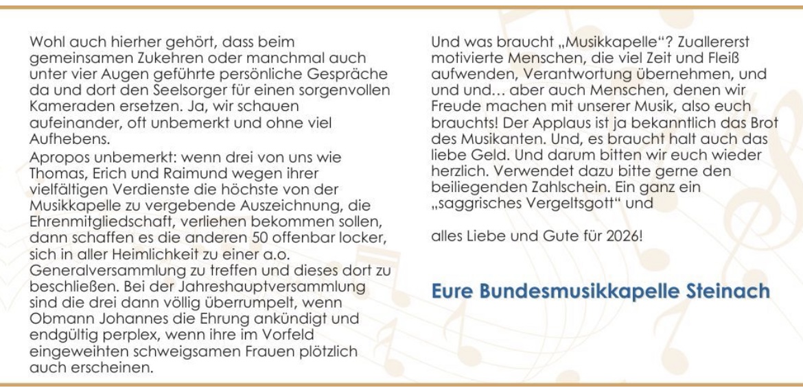 Ein gutes und glückliches Neues Jahr 2026… wünschen wir allen Freunden, Unterstützern und Musikanten 🤩! Hier unser Jahrespostwurf an alle Haushalte in Steinach.