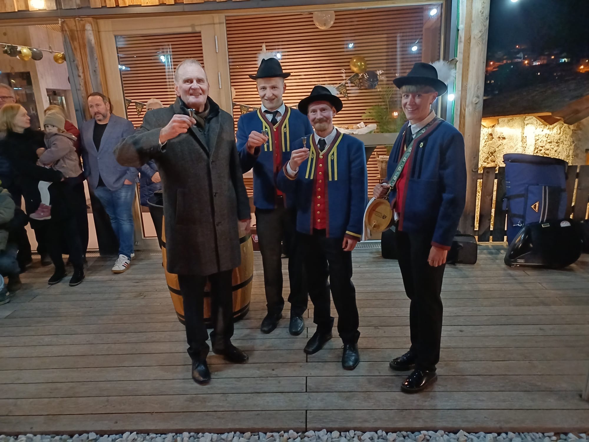 Und gleich noch ein Ehrenmitglied feierte einen runden Geburtstag 🎂. Unser Jochen Knabl wurde am 23.1. frische 70! Am 7.2. lud er seine Musig und die Jagdhornbläser, deren Ehrenmitglied er ebenfalls ist, auf Schloss Trautson zu einer bewegenden und würdigen Feier 🥂.